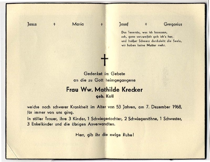 Krecker, geb. Koll | Vorname: |