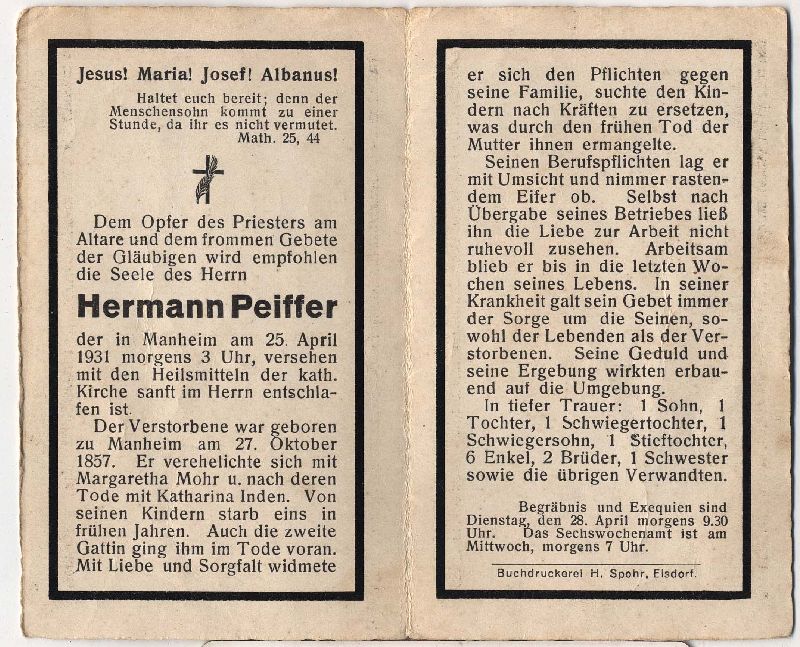 Wohnort: Manheim; ∞ Margaretha Mohr, †; ∞ Katharina Inden; von den Kindern starb 1 früh; 2 überlebende Kinder |