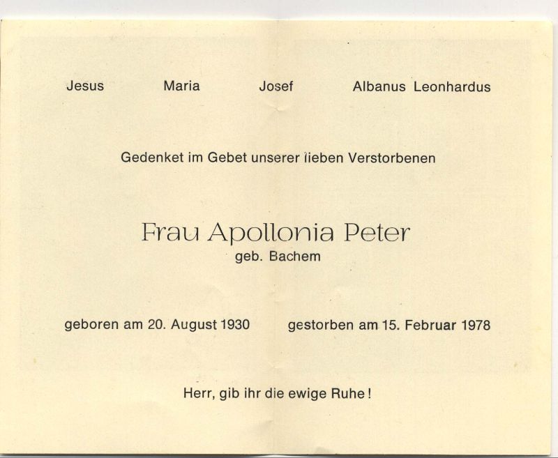 Peter (Peters?), geb. Bachem | Vorname: |