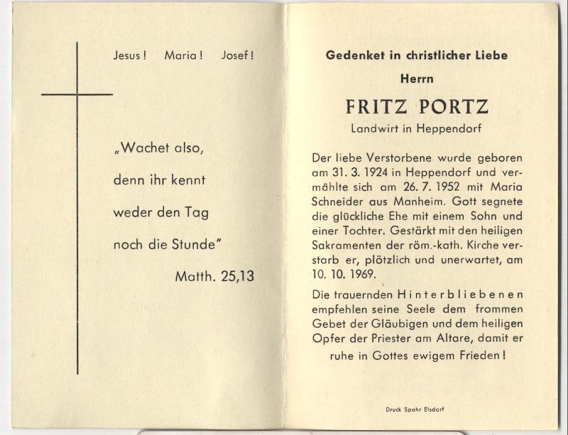 Landwirt in Heppendorf; ∞ 26.7.1952 Maria Schneider aus Manheim; 2 K. |