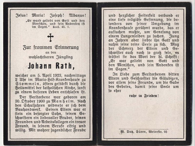 Wohnort: vermutl. Manheim; Jüngling; im Bauhandwerk tätig; suchte im Krankenhaus Genesung von einem Lungenleiden |