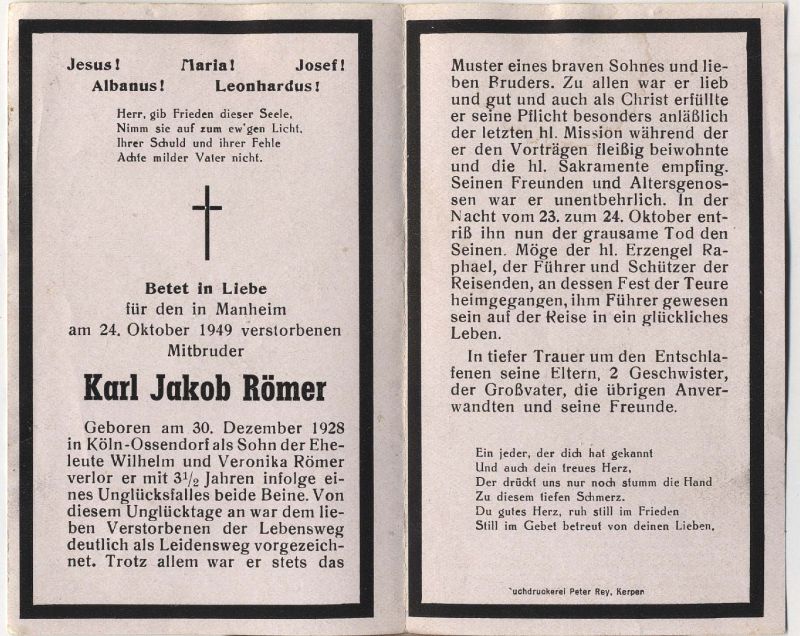 Eltern: Wilhelm u. Veronika Römer; verlor mit dreieinhalb Jahren durch einen Unglücksfall beide Beine; |