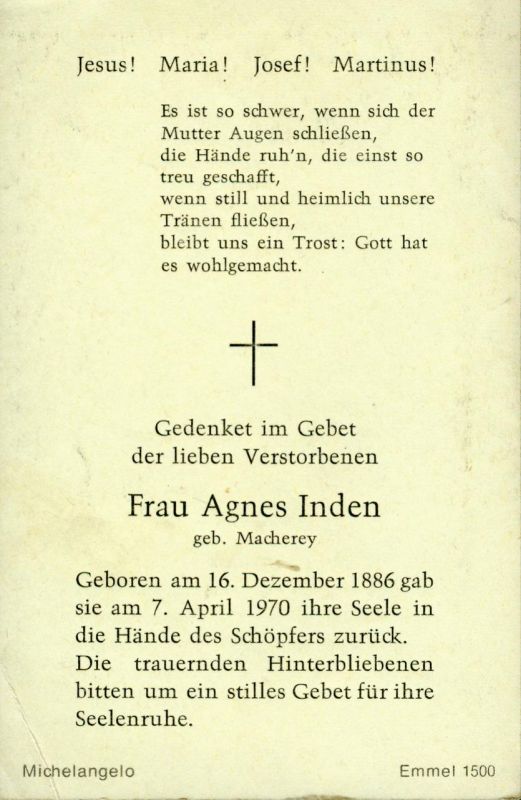 Inden, geb. Macherey | Vorname: |