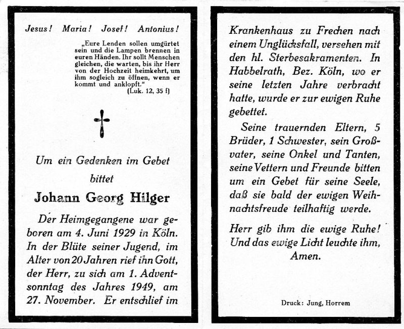Tod nach Unglücksfall; lebte die letzten Jahre in Habbelrath; dort auch begraben |