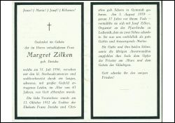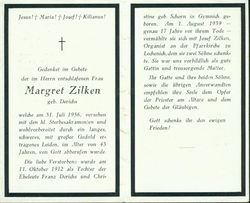 Eltern: Franz Derichs und Christine Schorn; ∞ 1.8.1939 Josef Zilken; 2 K. |