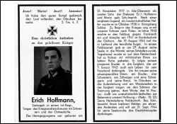 Gefallener 2. Weltkrieg; Eltern: Erich Hoffmann u. Maria geb. Schulmerich; Okt. 1938 Soldat; 1940 Frankreich, 1941 Ostfront; 19.8.1944 verwundet; Bruder 7.1.1943 gefallen; verlobt; Heimatpfarre Habbelrath |
