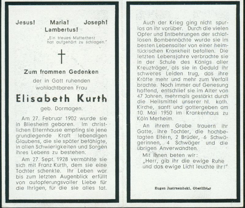 ∞ 27.9.1928 Franz Kurth; 1 K. |