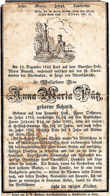 ∞ 1805 Gutsbesitzer Johann Pütz vom Gierather Hof, † 1835 |
