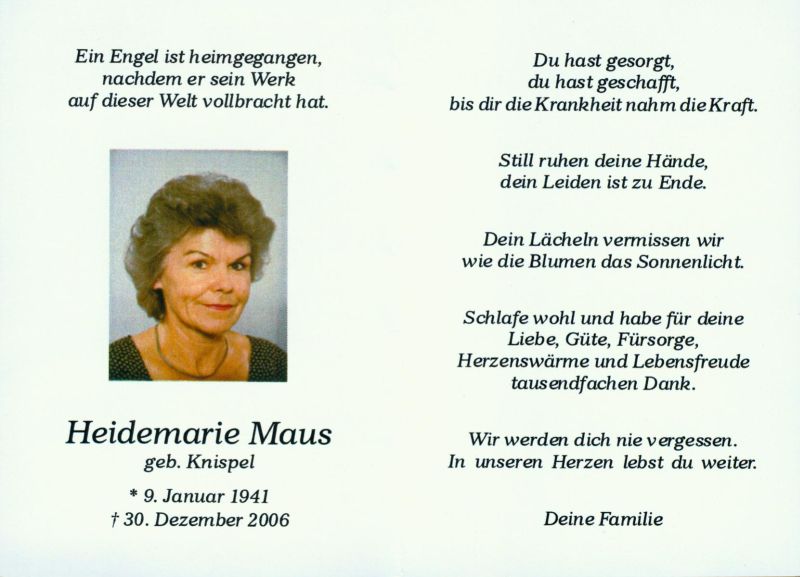 Maus, geb. Knispel | Vorname: |