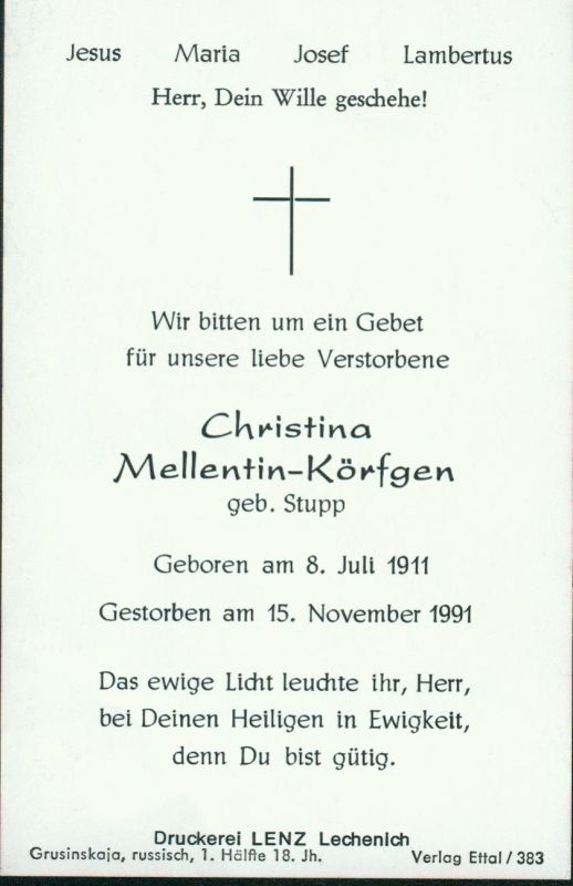 Mellentin-Körfgen, geb. Strupp | Vorname: |