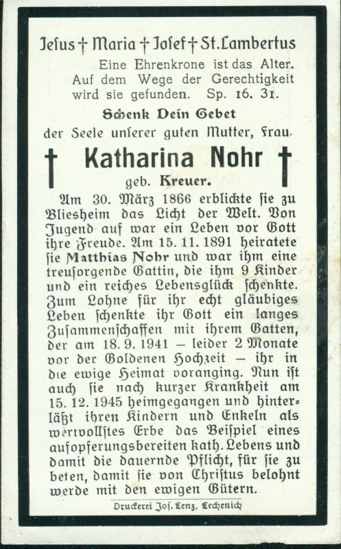 | ∞ 15.11.1891 Matthias Nohr 18.9.1941 †; 9 K. |