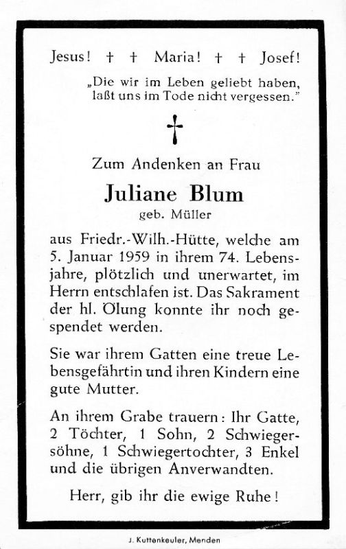 74 J.; aus Friedrich-Wilhelm-Hütte (Druck in Menden) |