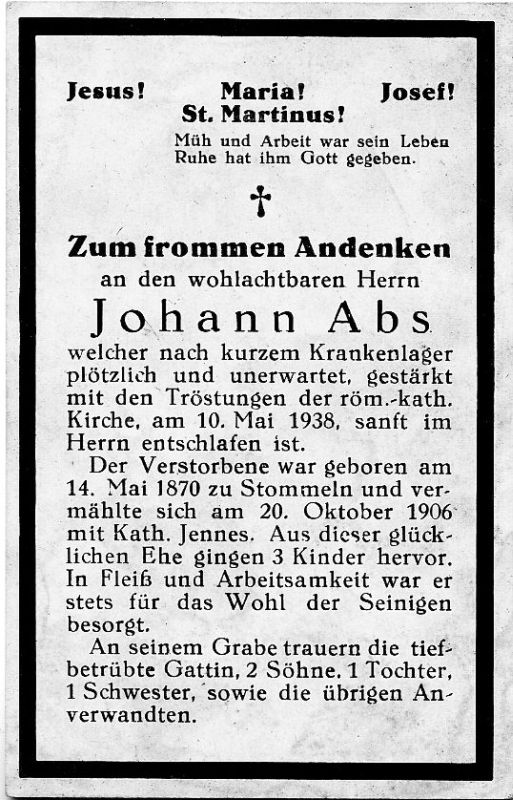 ∞ 20.10.1906 Katharina Jennes; 3 K. |
