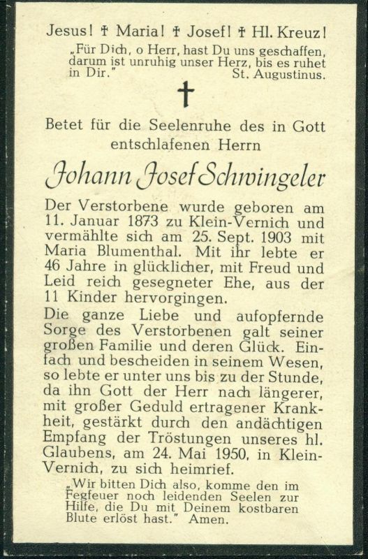∞ 25.9.1903 Maria Blumenthal; 11 K. |