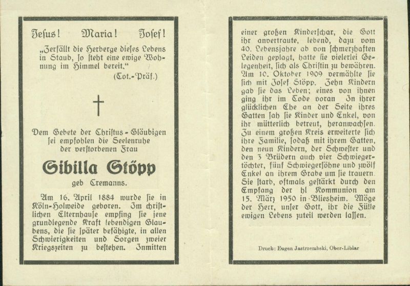 Stöpp, geb. Cremanns | Vorname: |