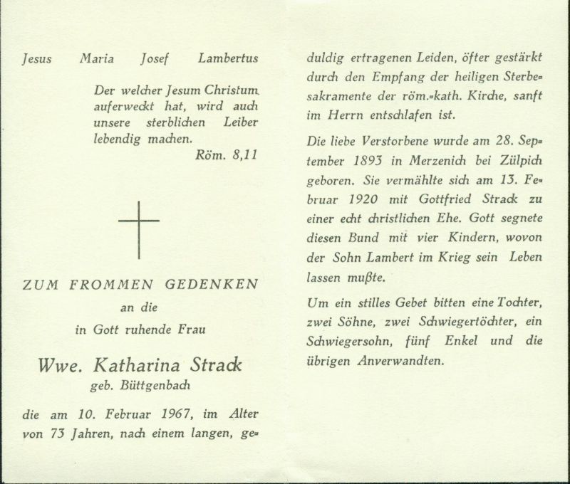 ∞ 13.2.1920 Gottfried Strack; 4 K. davon 1 † |