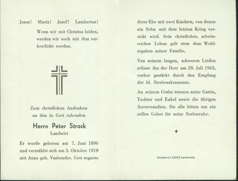 Landwirt; ∞ 3.10.1919 Anna Vasbender; 2 K. davon 1 † |
