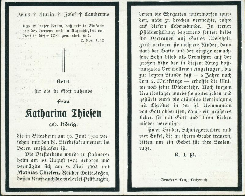∞ 9.5.1903 Mathias Thiesen †; x K. alle † |