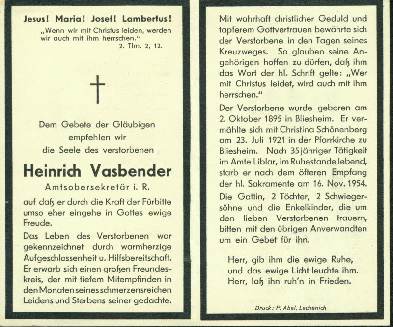 Amtsobersekretär; ∞ 23.7.1921 Christina Schönenberg; 2 K. |