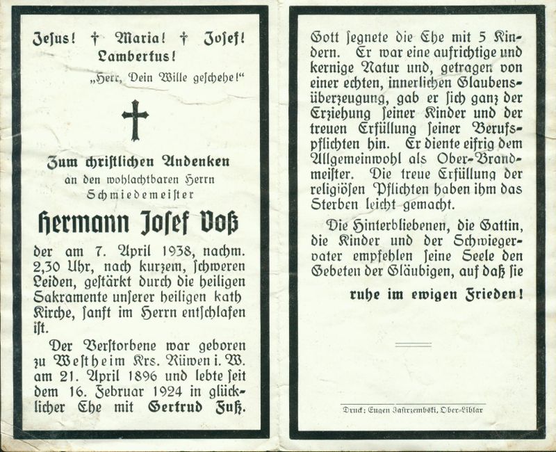 Schmiedemeister; ∞ 16.2.1924 Gertrud Fuß; 5 K.; Oberbrandmeister |