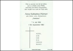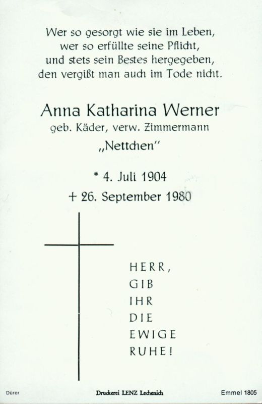 Werner, geb. geb. Käder verw. Zimmermann | Vorname: |