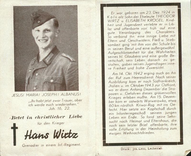 Eltern: Theodor Wirtz und Elisabeth Krögel; wohnte in Liblar |