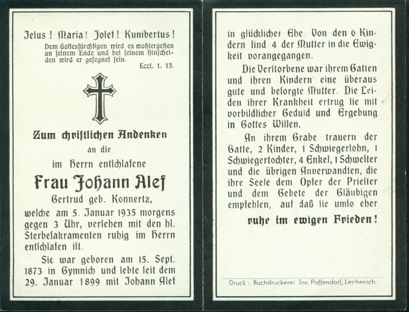 ∞ 29.1.1899 Johann Alef; 6 K. davon 4 † |