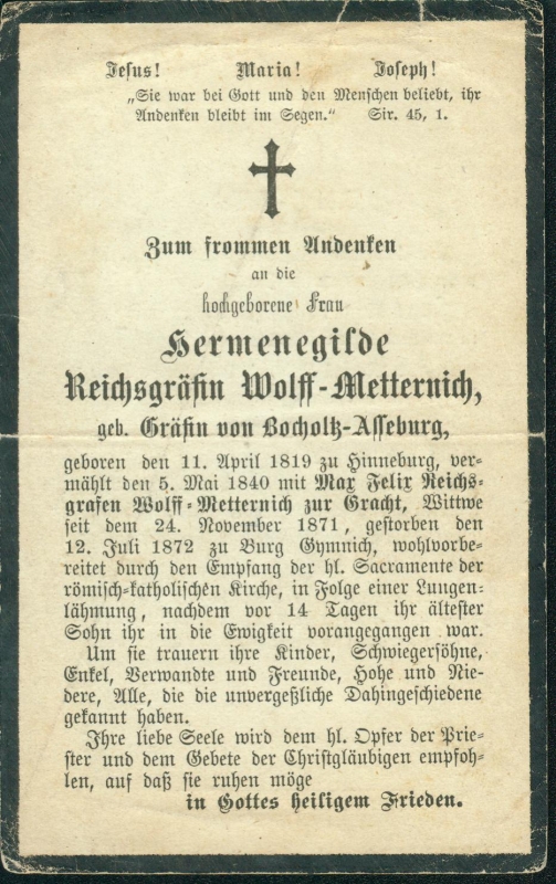 Reichsgräfin; ∞ 5.5.1840 Max Felix Reichsgraf Wolff-Metternich zur Gracht † |