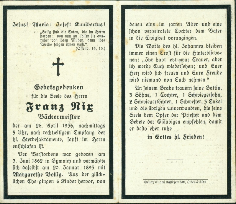 Bäckermeister; ∞ 20.1.1895 Margarethe Bollig; 6 K. davon 2 † |