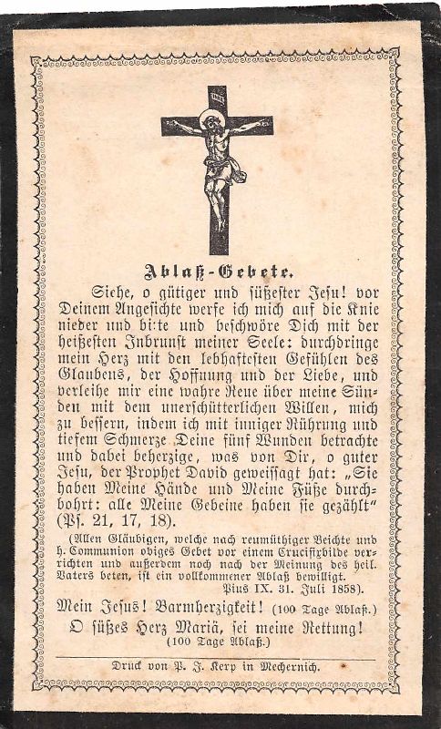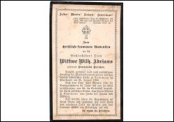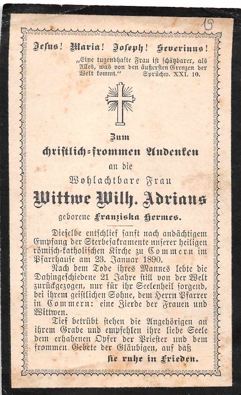 Nach dem Tode ihres Mannes Wilhelm Adrians lebte sie 21 J. bei ihrem geistlichen Sohn, Pfarrer in Kommern |