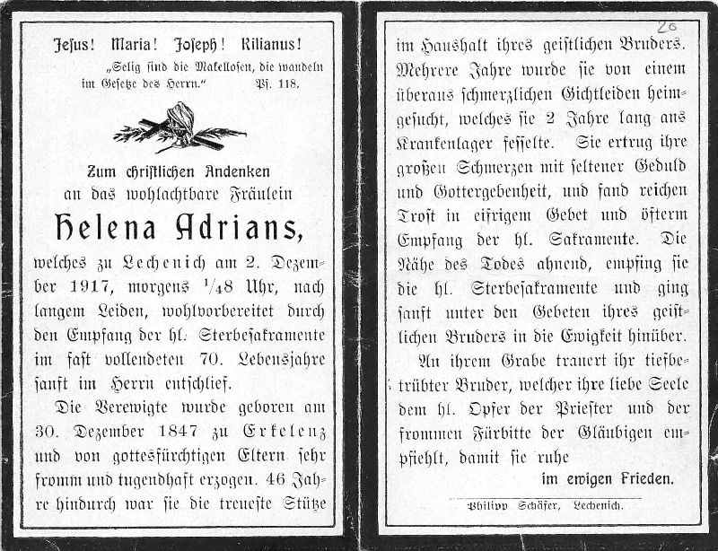Fräulein; langes Leiden; 46 J. Stütze im Haushalt ihres geistlichen Bruders; Gichtleiden |