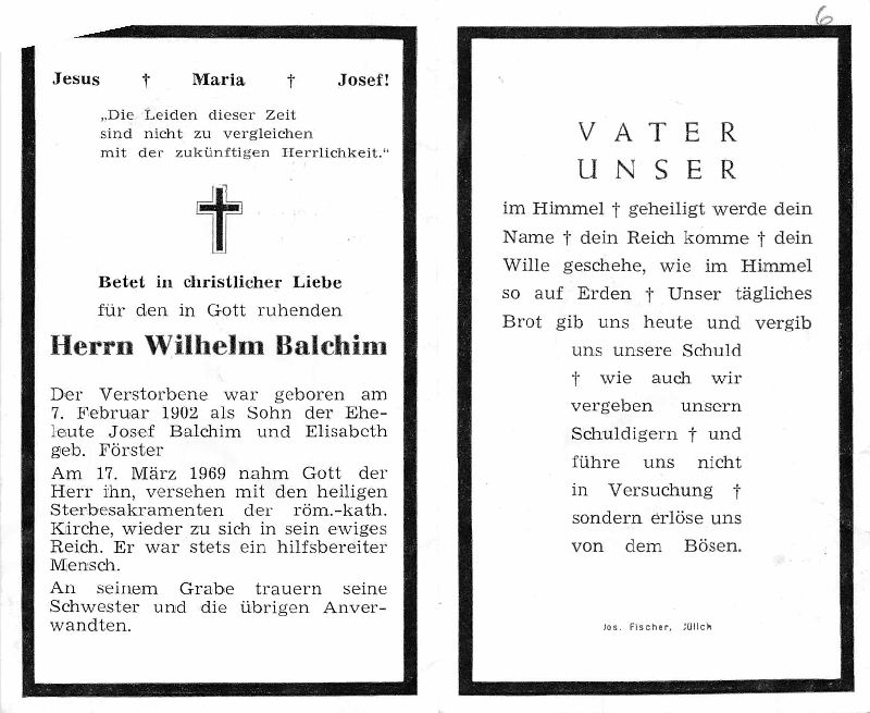 | Eltern: Josef Balchim u. Elisabeth geb. Förster; Druck in Jülich |