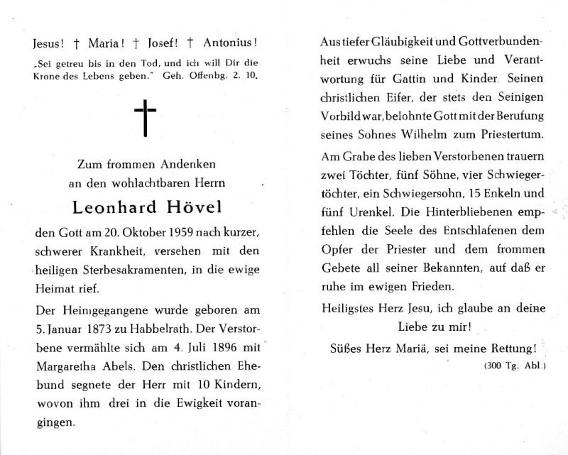 ∞ 4.7.1896 Margaretha Abels; 10 K., davon 3 †; Sohn Wilhelm wurde Priester |