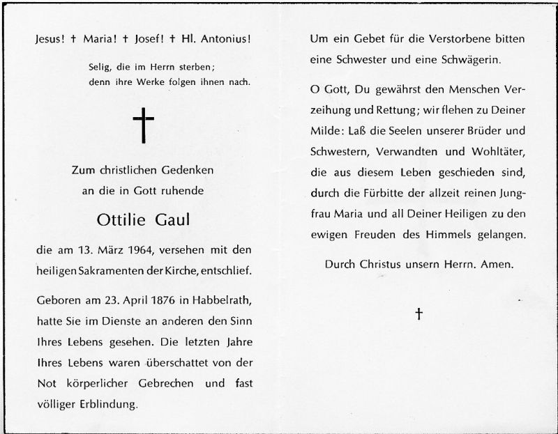 In den letzten Jahren körperliche Gebrechen u. fast völlige Erblindung (Habbelrath) |