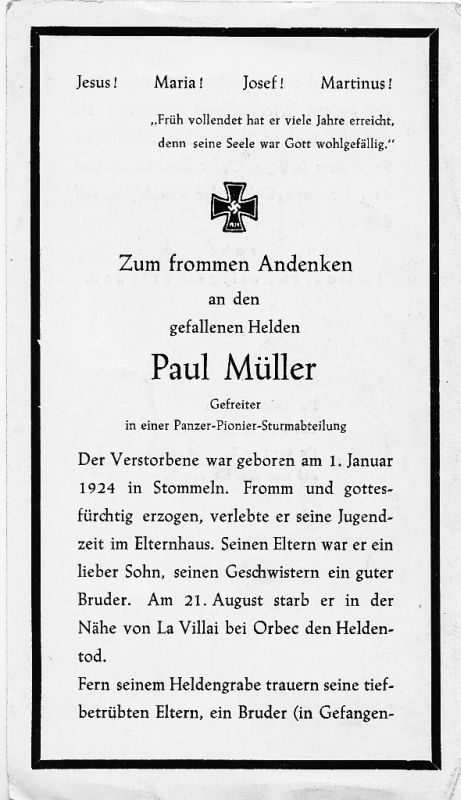 | Gefallener 2. Weltkrieg; 1 Bruder in Gefangenschaft |