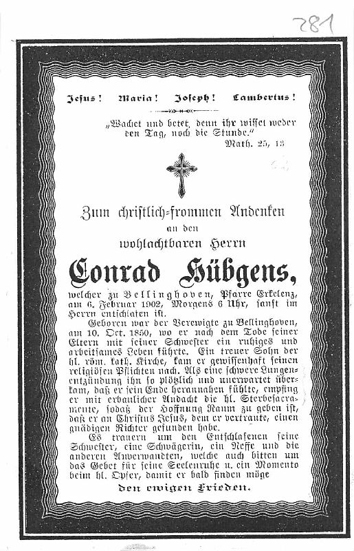Bellinghoven, Pfarre Erkelenz | | Sterbedatum: |