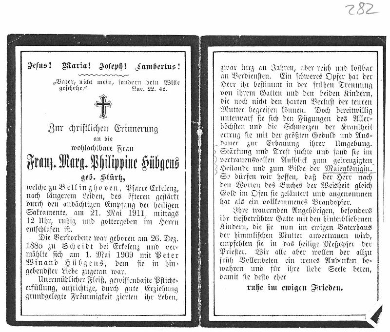 | ∞ 1.5.1909 Peter Winand Hübgens, früh †; 2 K.; |