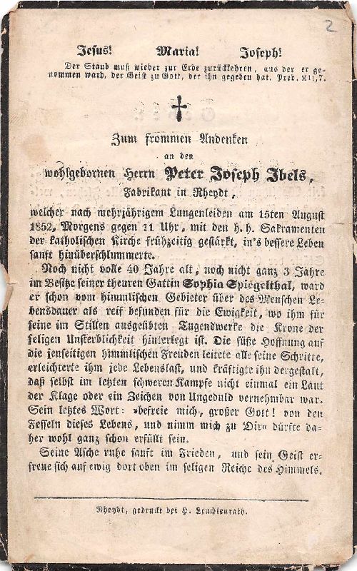 | Fabrikant in Rheydt; mehrjähriges Jungenleiden; ∞ 1849 Sophia Spiegelthal |