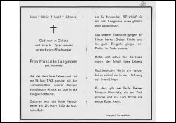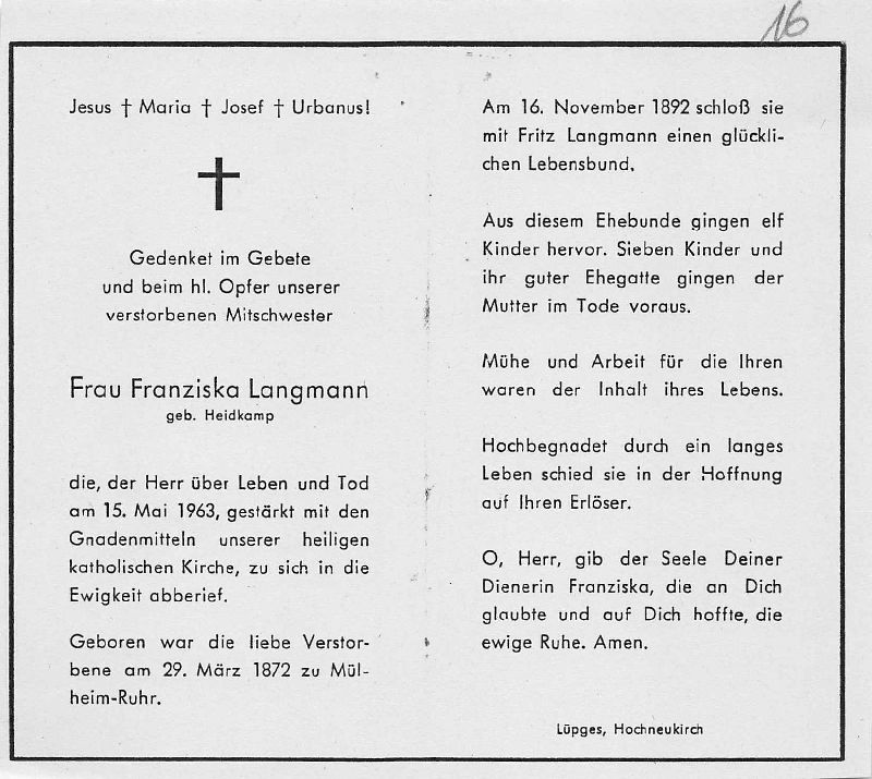 | ∞ 16.11.1892 Fritz Langmann, † ; 11 K., davon 7 †; Druck in Hochneukirch |