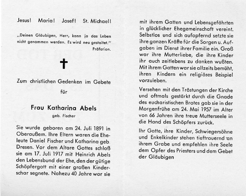 Eltern: Daniel Fischer u. Katharina geb. Dresen; ∞ 17.7.1919 Heinrich Abels; viele Kinder (Buir) |
