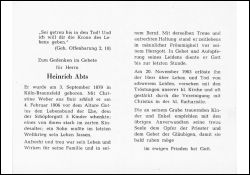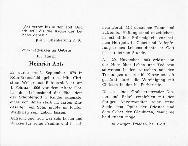∞ 4.2.1906 Christine Weber aus Buir; 5 K., davon 1 früh †; 1 Sohn im 2. Weltkrieg gefallen; schweres Leiden |