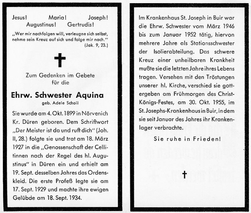Aquina, Schwester, geb. Scholl | | Vorname: |