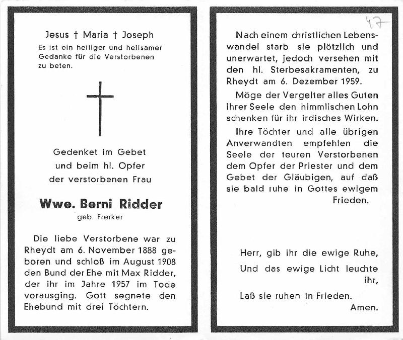 ∞ August 1908 Max Ridder, † 1957; 3 Töchter |