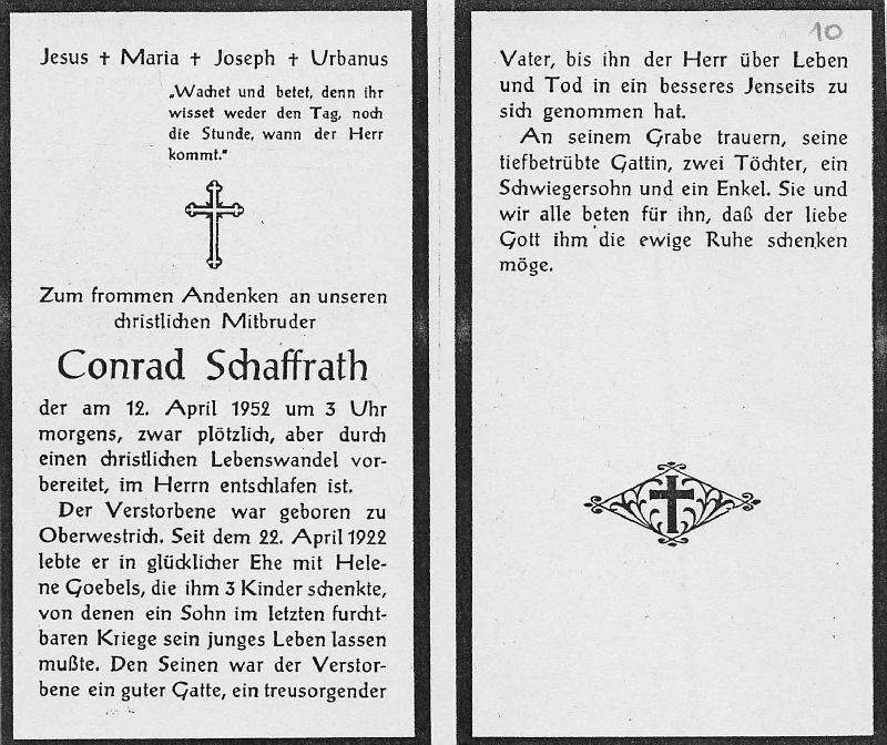 | ∞ 22.4.1922 Helene Goebels; 3 K., davon 1 Sohn im 2. Weltkrieg gefallen; |