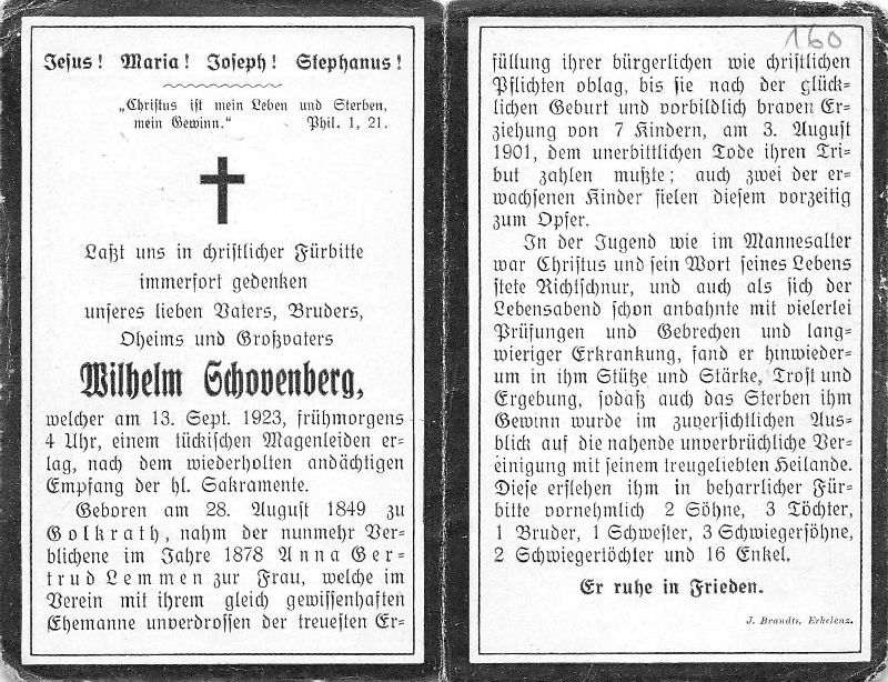 | Magenleiden; ∞ 1878 Anna Gertrud Lemmen, † 3.8.1901; 7 K., davon 2 †; |