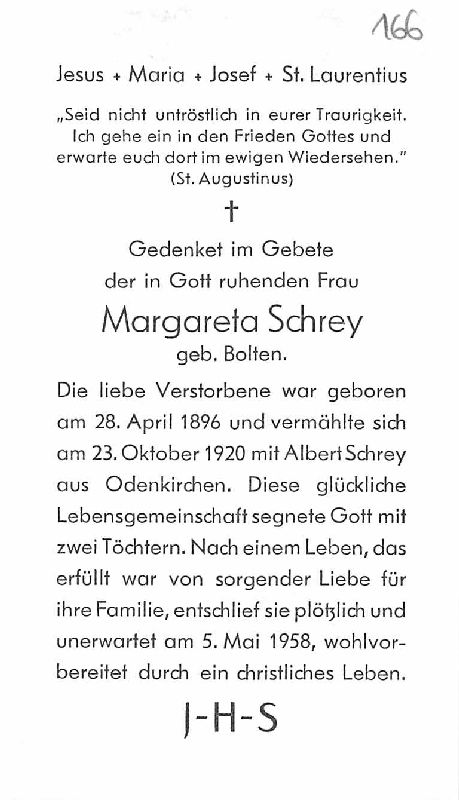| ∞ 23.10.1920 Albert Schrey aus Odenkirchen; 2 Töchter |