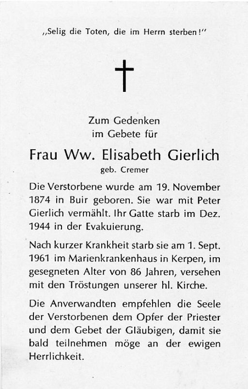 Gierlich, geb. Cremer | Vorname: |