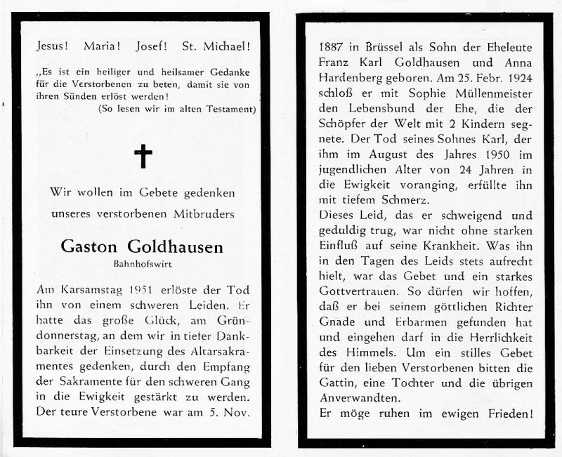 Bahnhofswirt; Eltern: Karl Goldhausen u. Anna Hardenberg; ∞ 25.2.1924 Sophie Müllenmeister; 2 K.; Sohn Karl 1950 mit 24 J. † (Buir) |