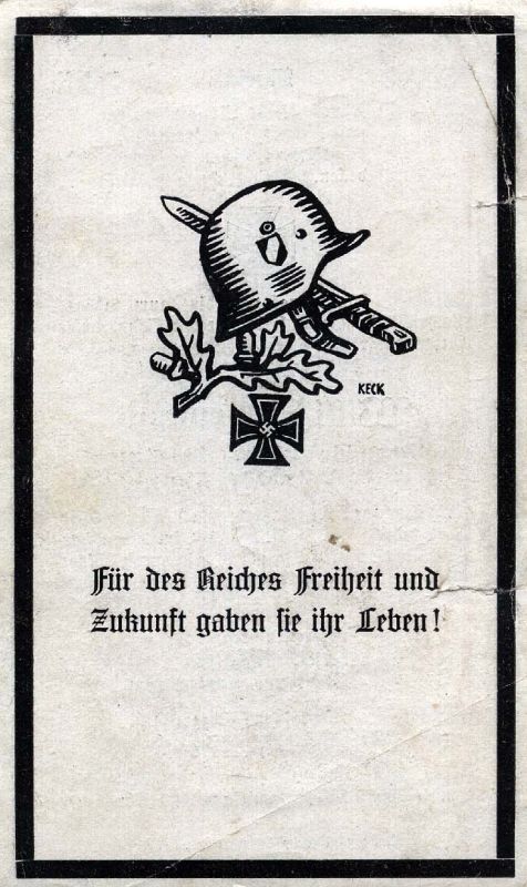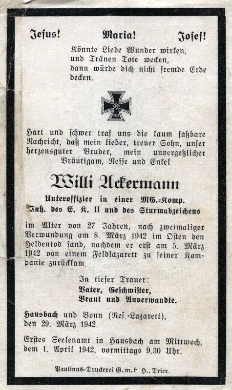 Gefallener 2. Weltkrieg; 27 J.; Wohnort: Hausbach; Druck in Trier |