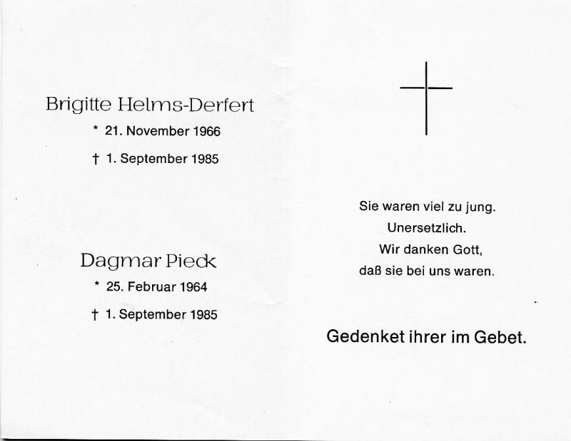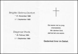 Gemeinsamer Totenzettel mit Dagmar Pieck, * 25.2.1964, † 1.9.1985 |